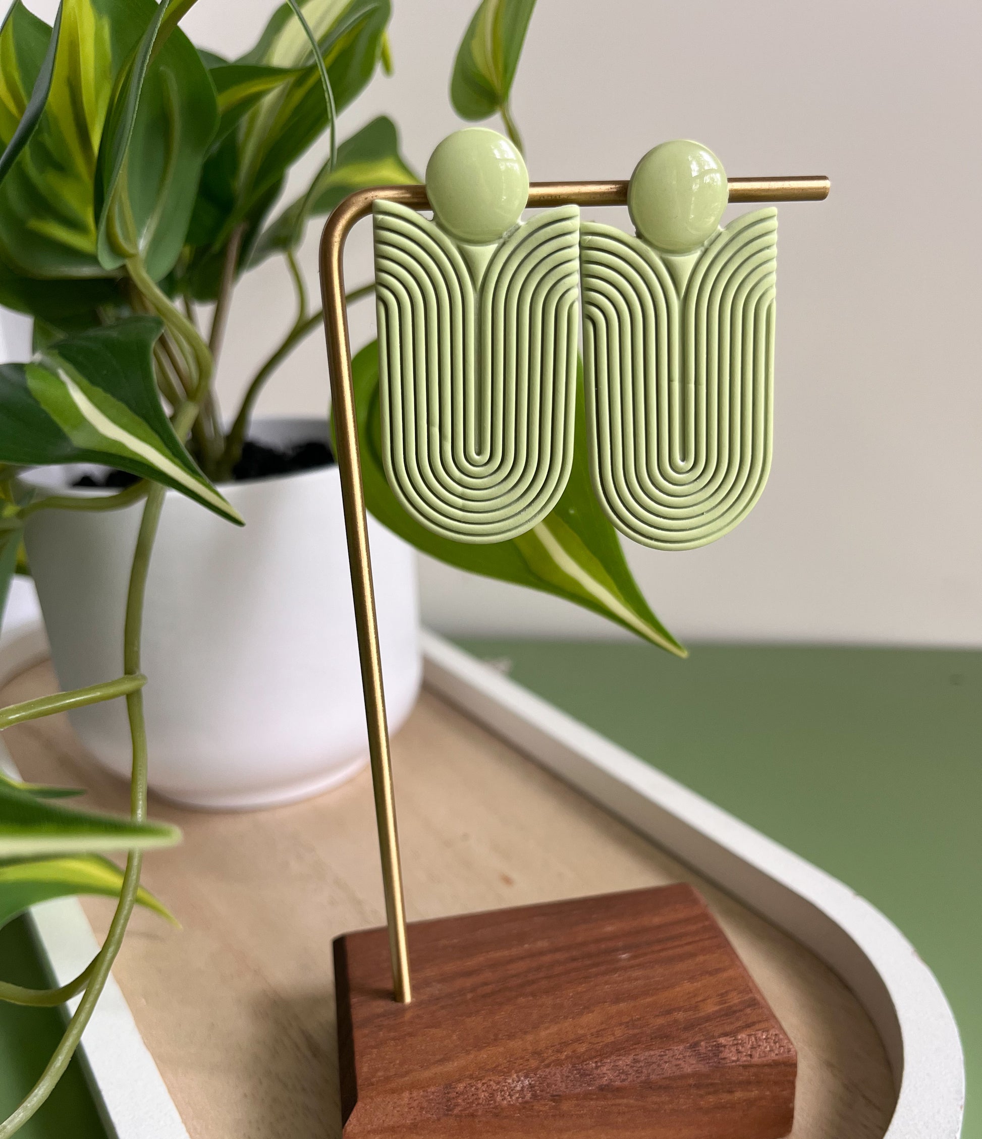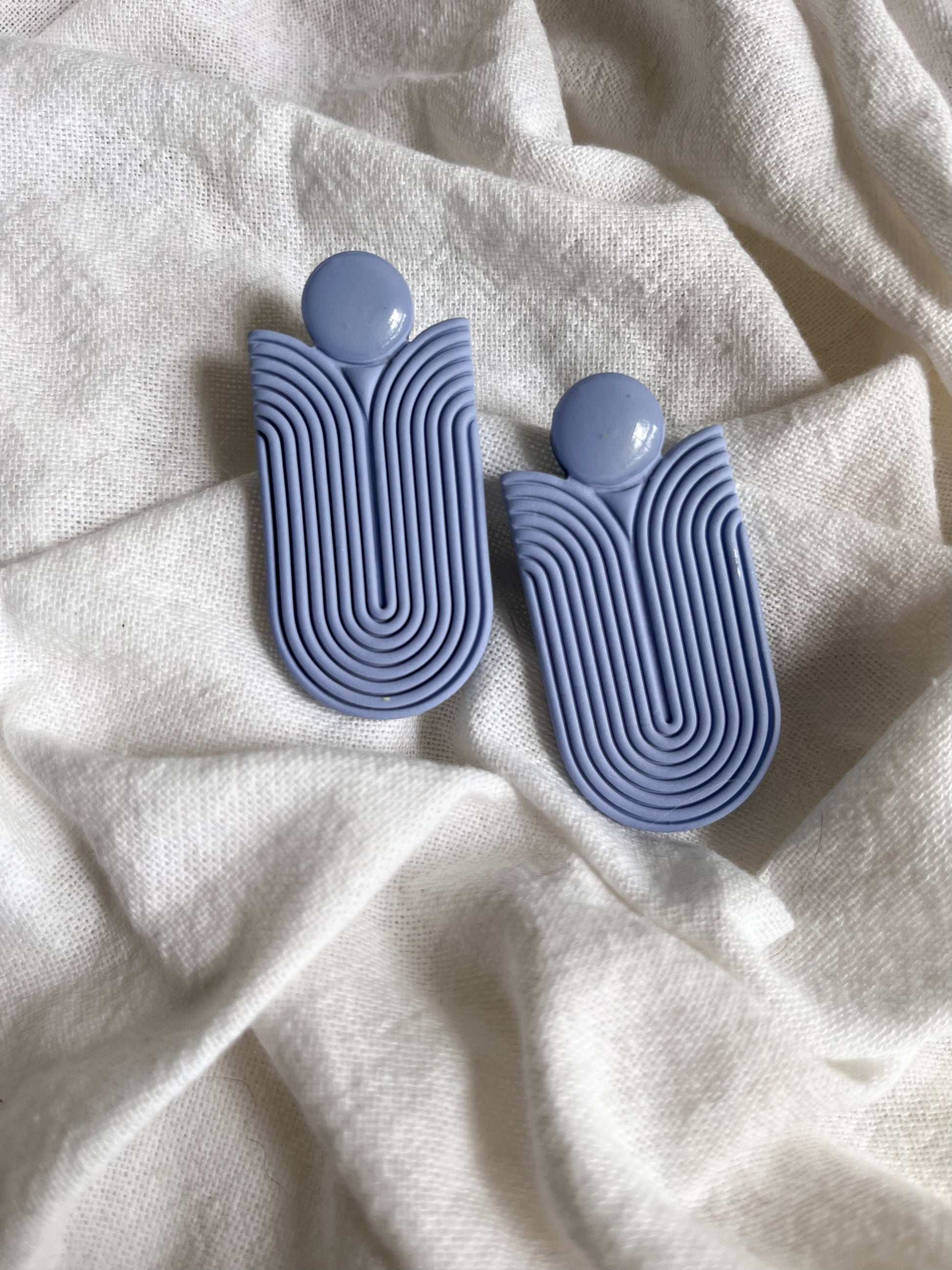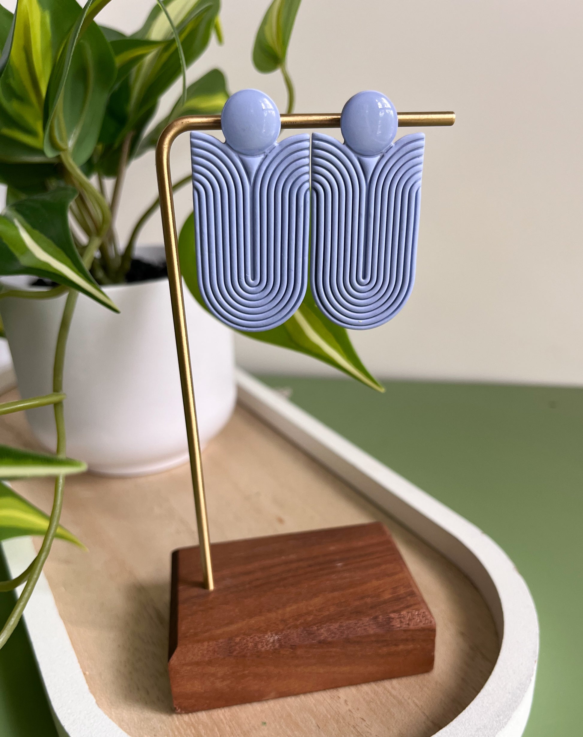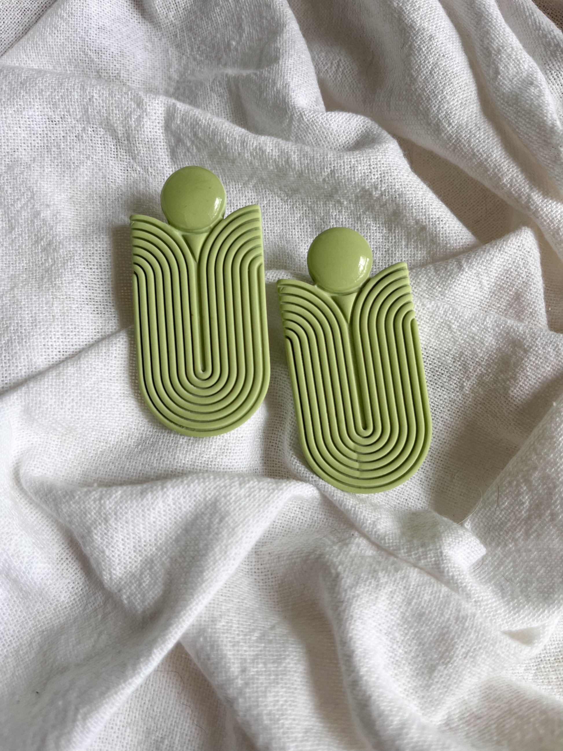 A lovely and bold statement earring available in periwinkle or green. Features a spot of resin for a little shine and a stainless steel stud back.