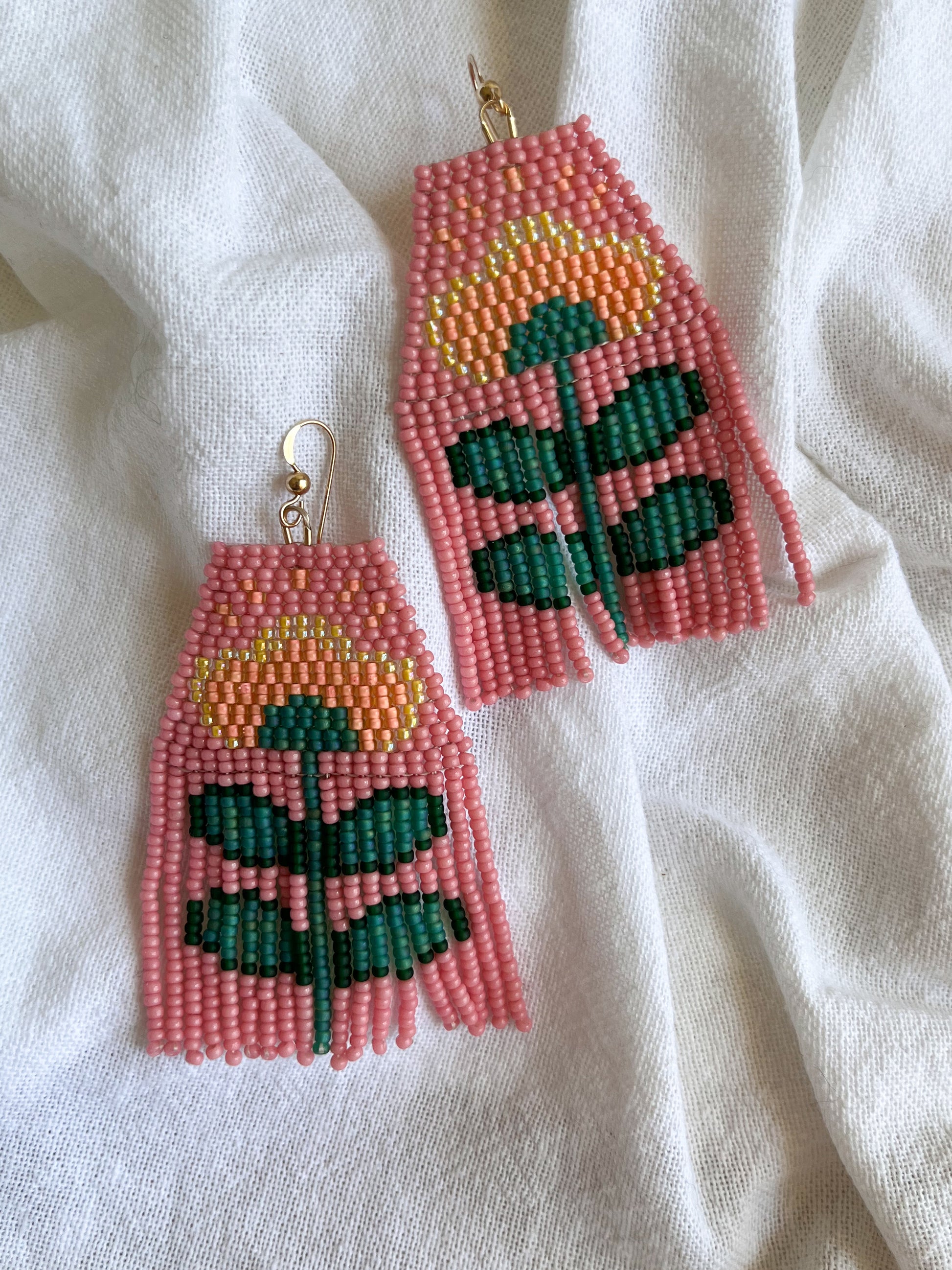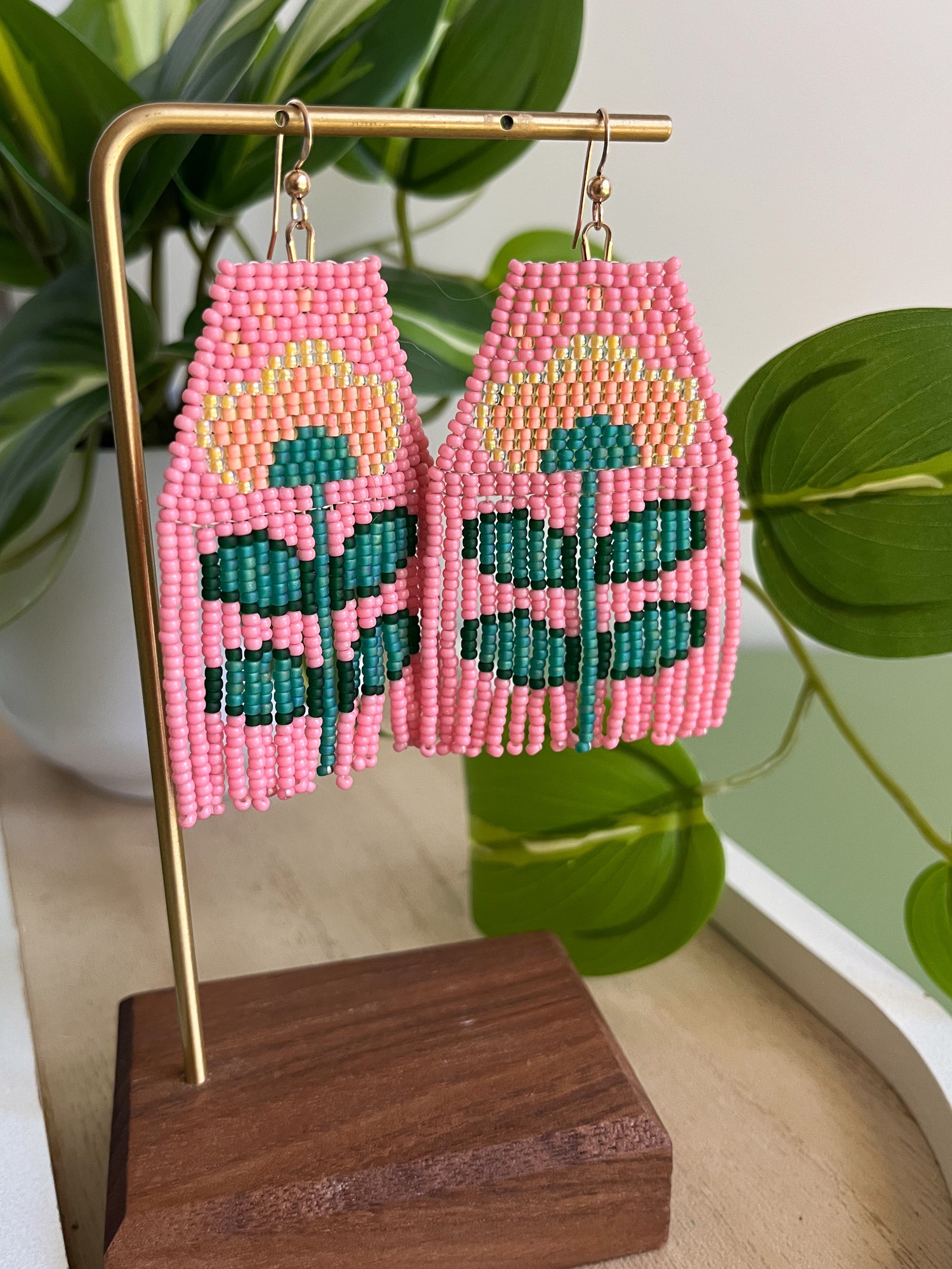 Brick Stitch fringe earrings in a lovely color combo. Features gold filled ear hooks.