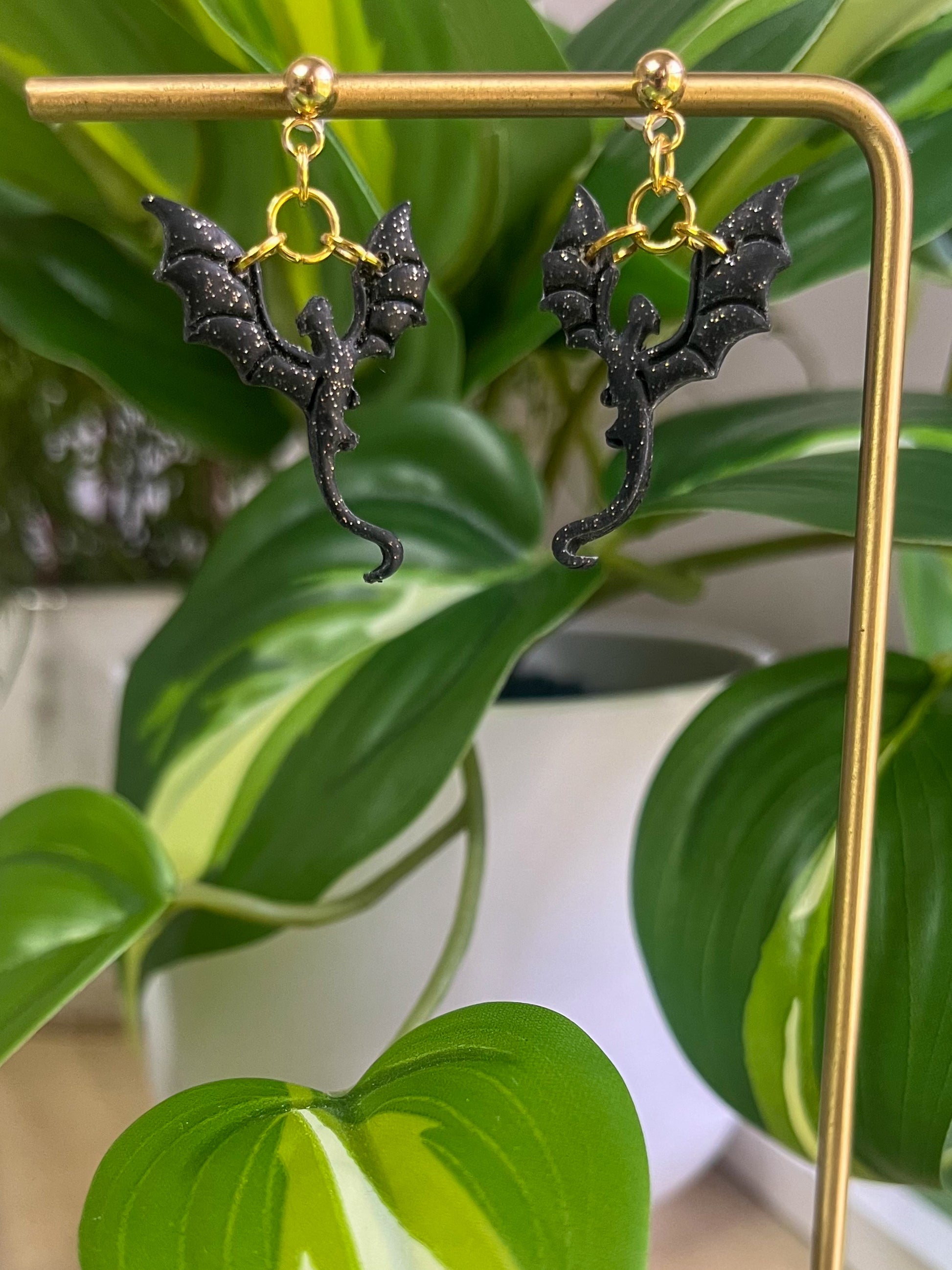 Beautiful Sparkly Black Dragons rising up into the sky.