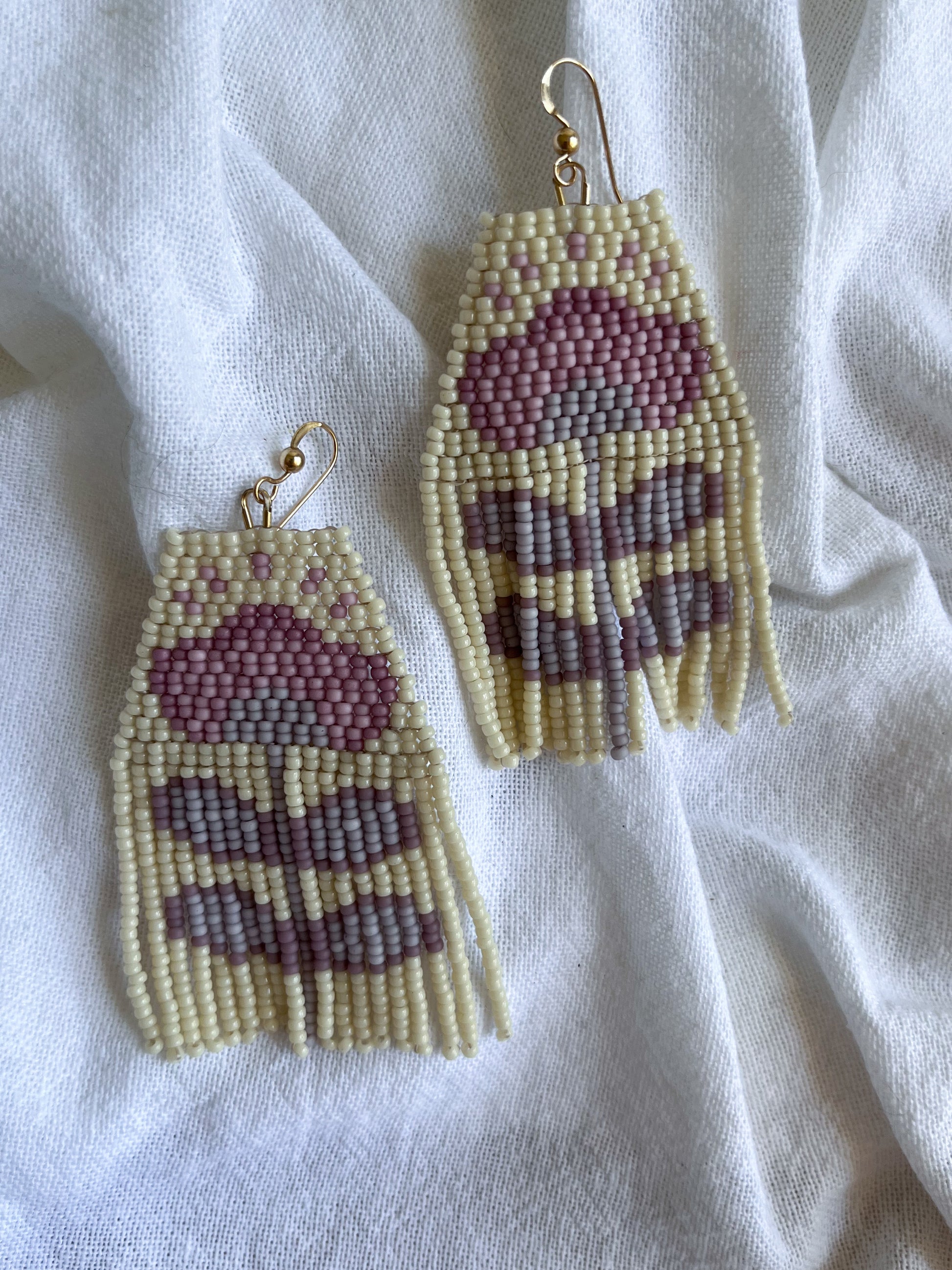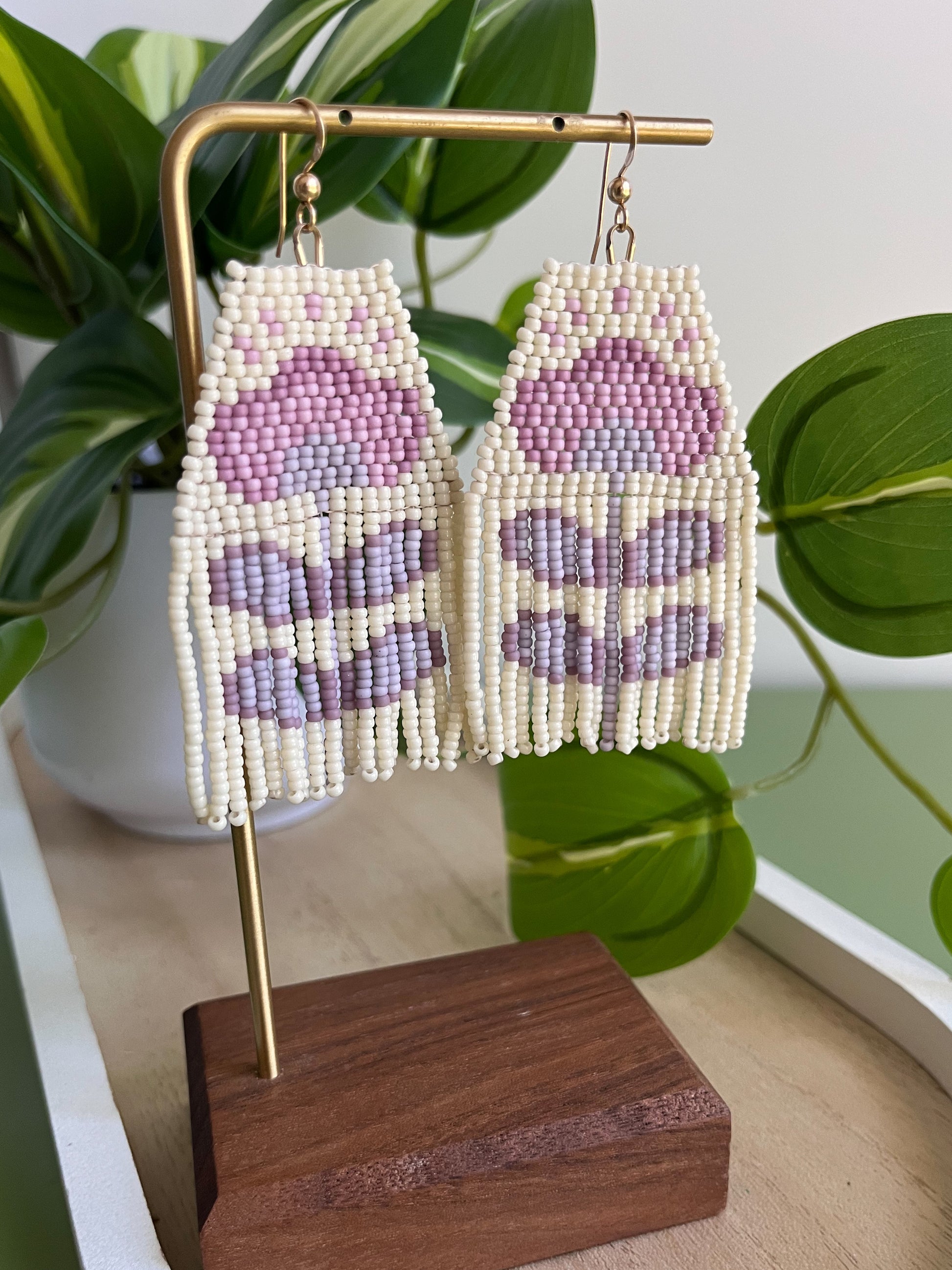 Brick Stitch fringe earrings in a lovely color combo. Features gold filled ear hooks.