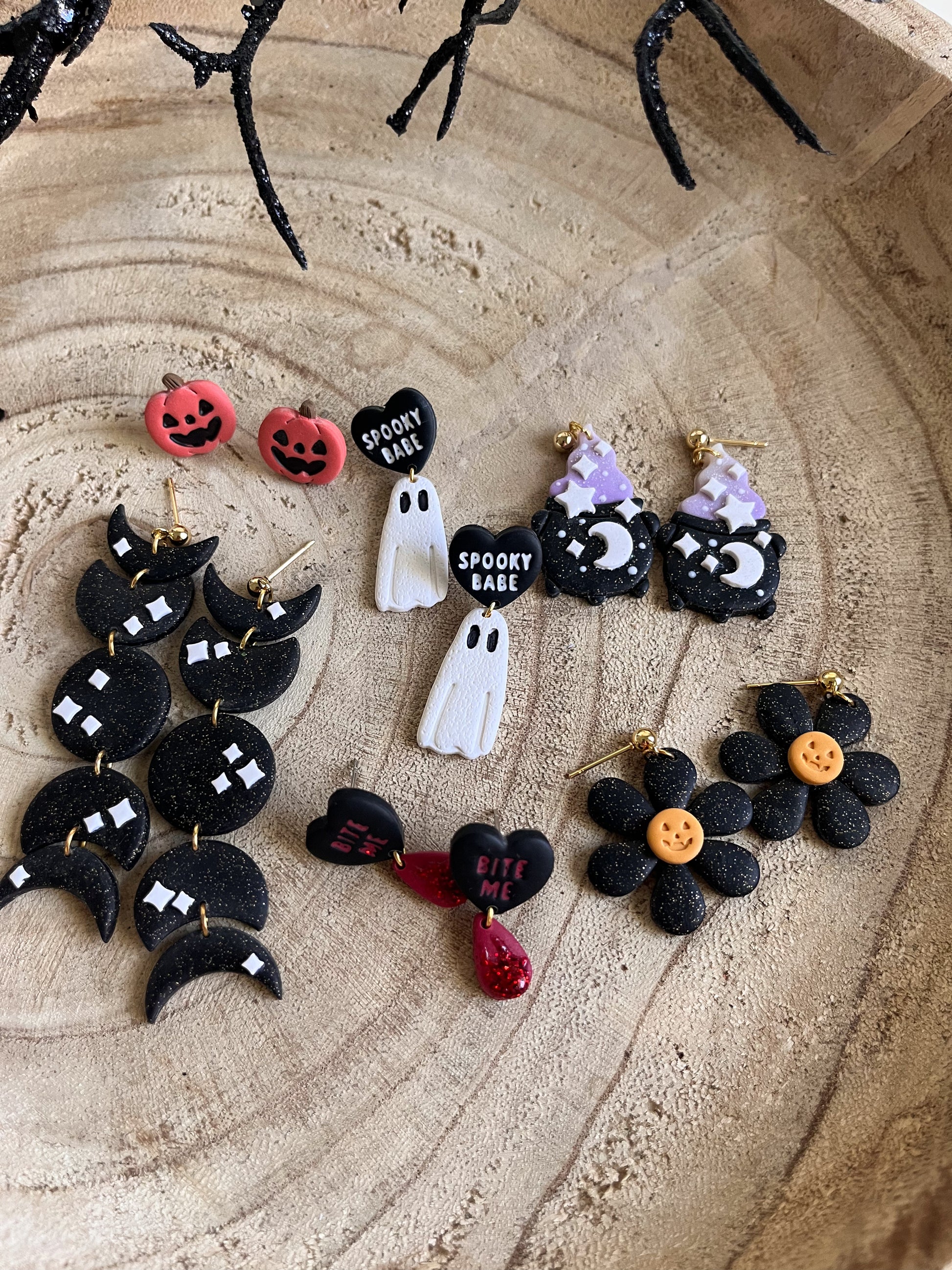 A collection of 6 pairs of earrings with classic Halloween style, available at a 15% discount.