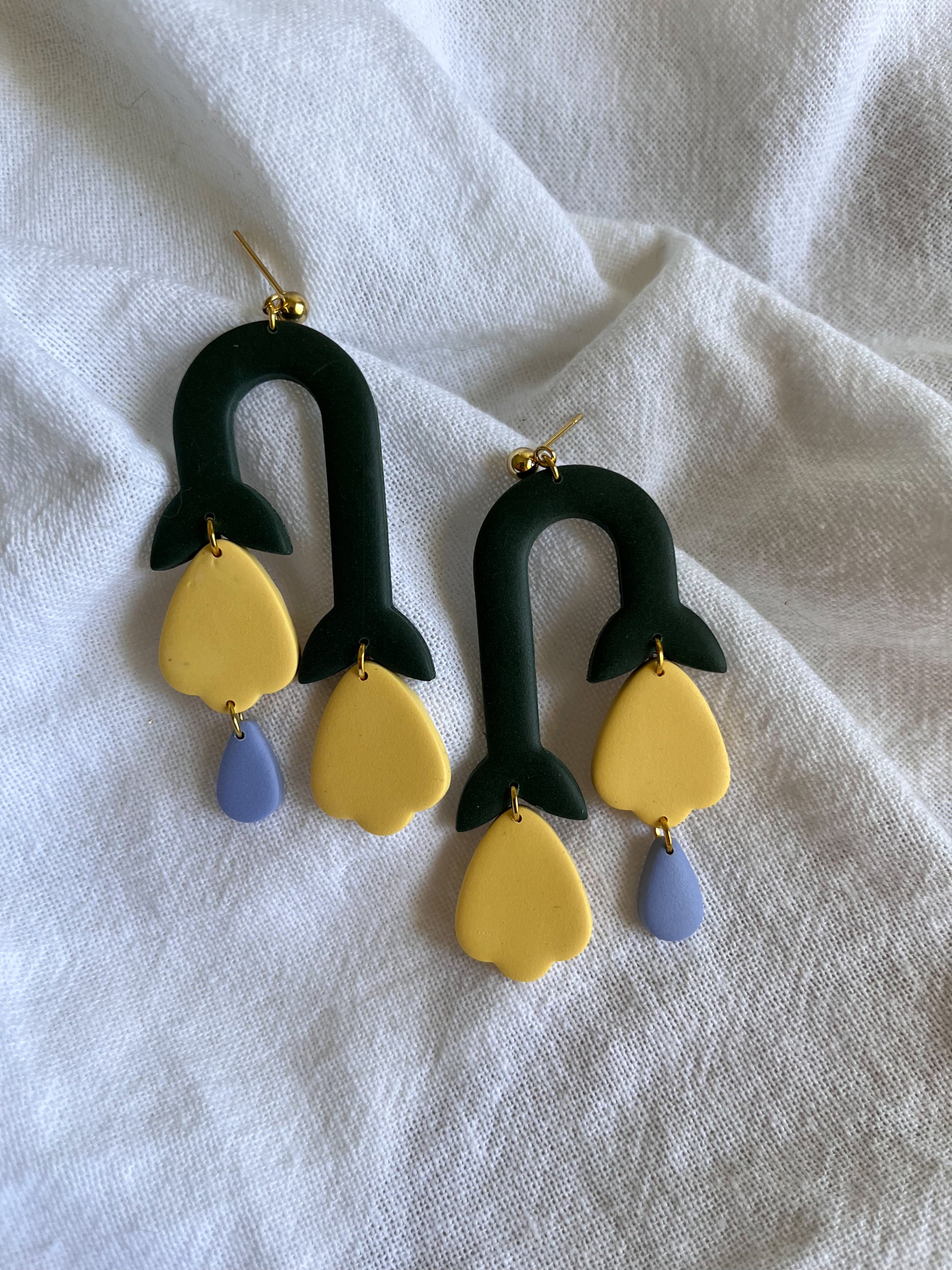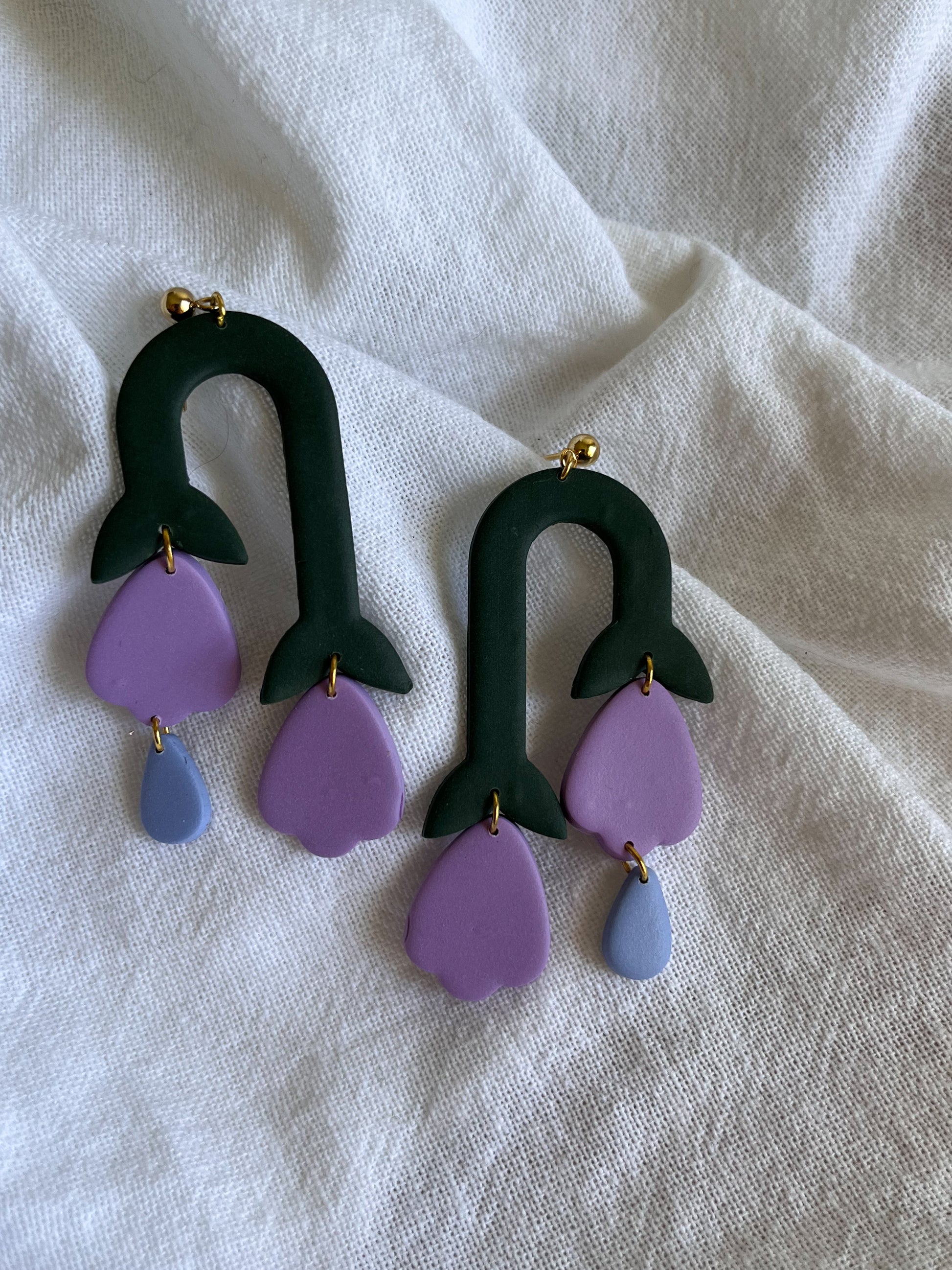 Earrings from Loganberry are made with polymer clay. Each earring is made by hand with great care. As a handmade item each earring is individually unique and may have minor imperfections. Earring hardware is either gold or silver plated and nickel free. Stud hardware is stainless steel.